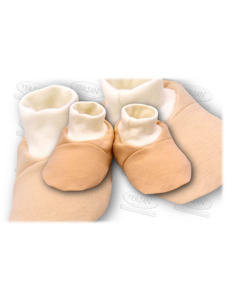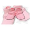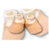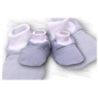 Buciki wykonane z cieplutkiego i milutkiego w dotyku weluru.Idealne dla naszego Maleństwa zarówno w chłodniejsze dni jak i po kąpieli.Buciki są wygodne do zakładania na stopki naszej pociechy,zakończone są delikatnym ściągaczem.