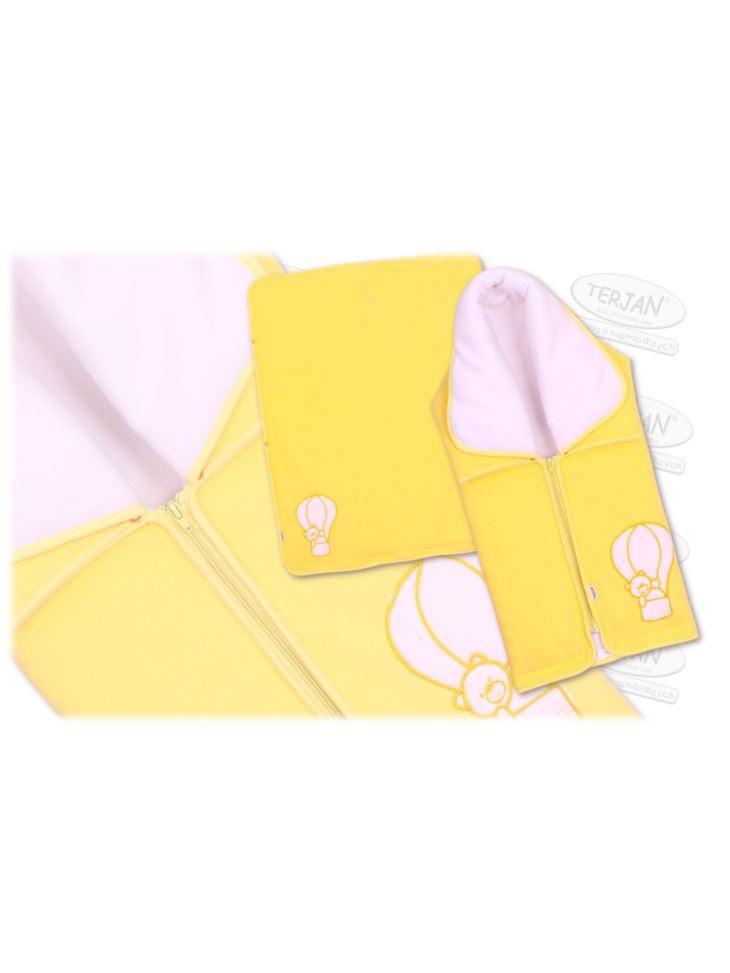 Okrycie wykonane jest z mięciutkiej i chłonnej frotki, 100 % bawełny. Obszyte jest lamówką. Z kapturkiem, który chroni główkę maluszka przed zimnem. Na kapturku znajduje się śliczny haftowany motyw.