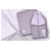Delikatny dwukolorowy rożek nieusztywniany wykonany z 100% bawełny typu Jersey.Rożek zapinany jest na rzep. co umożliwia wykorzystanie również jako miękkiego kocyka.Rozmiar: 78cm x 78cm