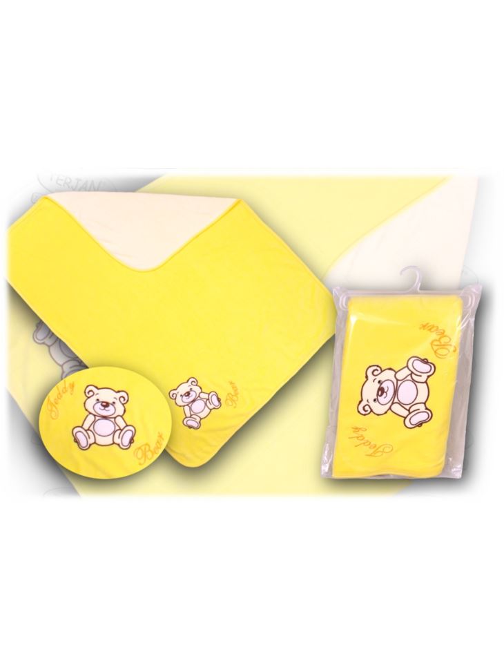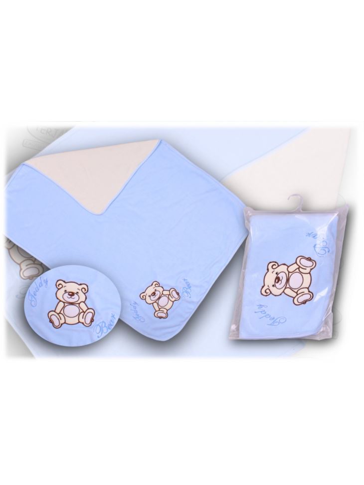 Kocyk wykonany w 100% z bawełny,w rozmiarze 75x100 cm.Zewnętrzna welurowa strona kocyka zdobiona jest ślicznym haftem,wewnętrzna strona to mięciutka frotka zapewniająca naszym pociechom doskonały komfort.