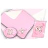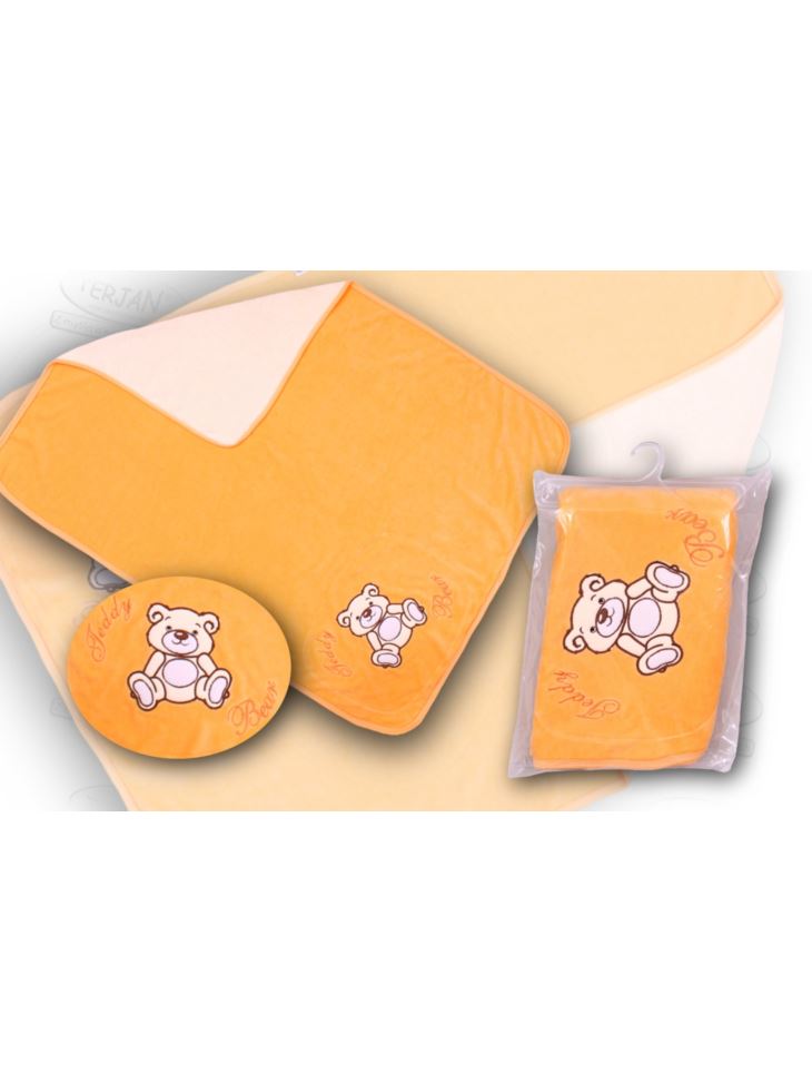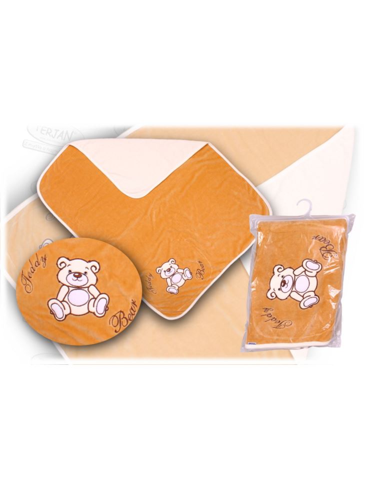 Kocyk wykonany z mięciutkiego i milutkiego polaru.Posiada zdobienie w postaci ślicznego haftu.Kocyk jest w rozmiarze 100cm x 75cm.Podusia wykonana jest również z delikatnego polaru jedwabnego.
